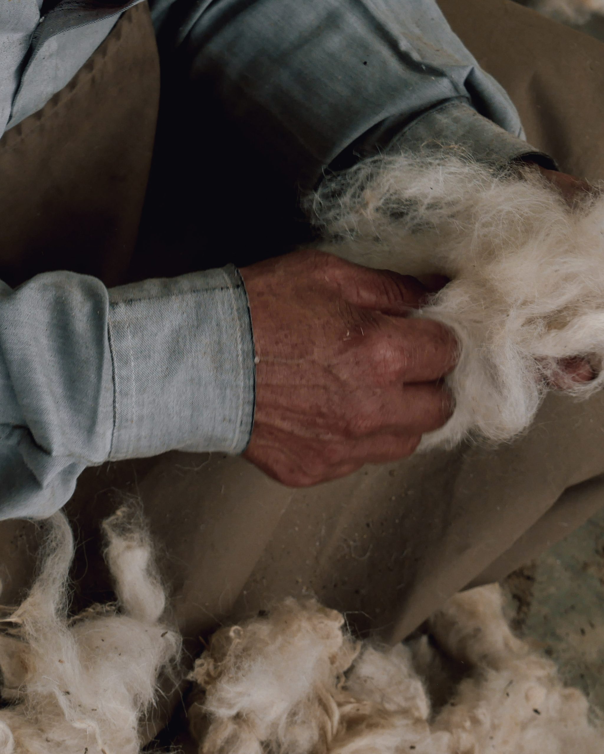 Dans les hauts pâturages himalayens, les moutons paissent librement sous l’immensité du ciel. Leur laine se développe au rythme des saisons, sculptée par le vent, le soleil et le temps. Récoltée délicatement à la main, elle incarne le premier geste de création, le premier chapitre que la nature écrit elle-même.